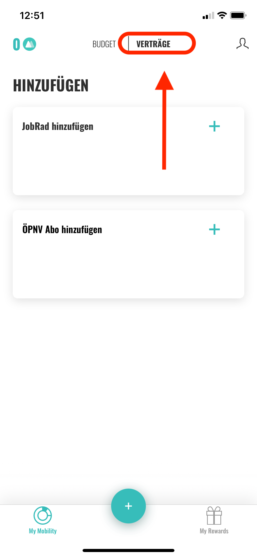 1. Logge Dich in Deine Moovster App ein und gehe auf Verträge (oben rot markiert)